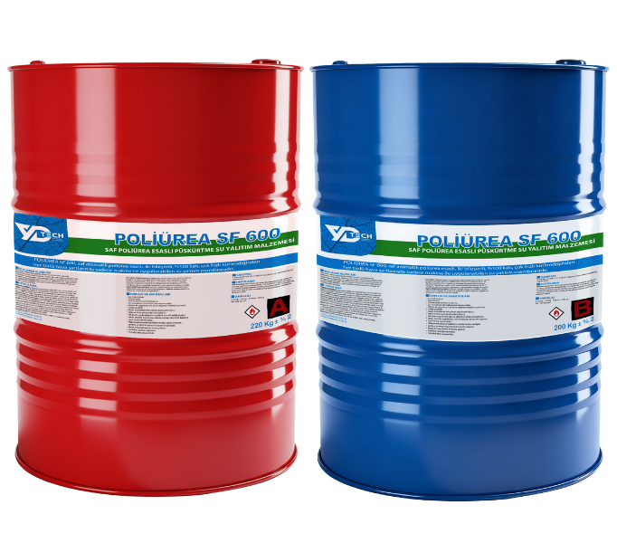 POLİÜREA SF 600, saf aromatik poliürea esaslı, iki bileşenli, %100 katı, çok hızlı kürlendiğinden her türlü hava şartlarında sadece makine ile uygulanabilen su yalıtım membranıdır.